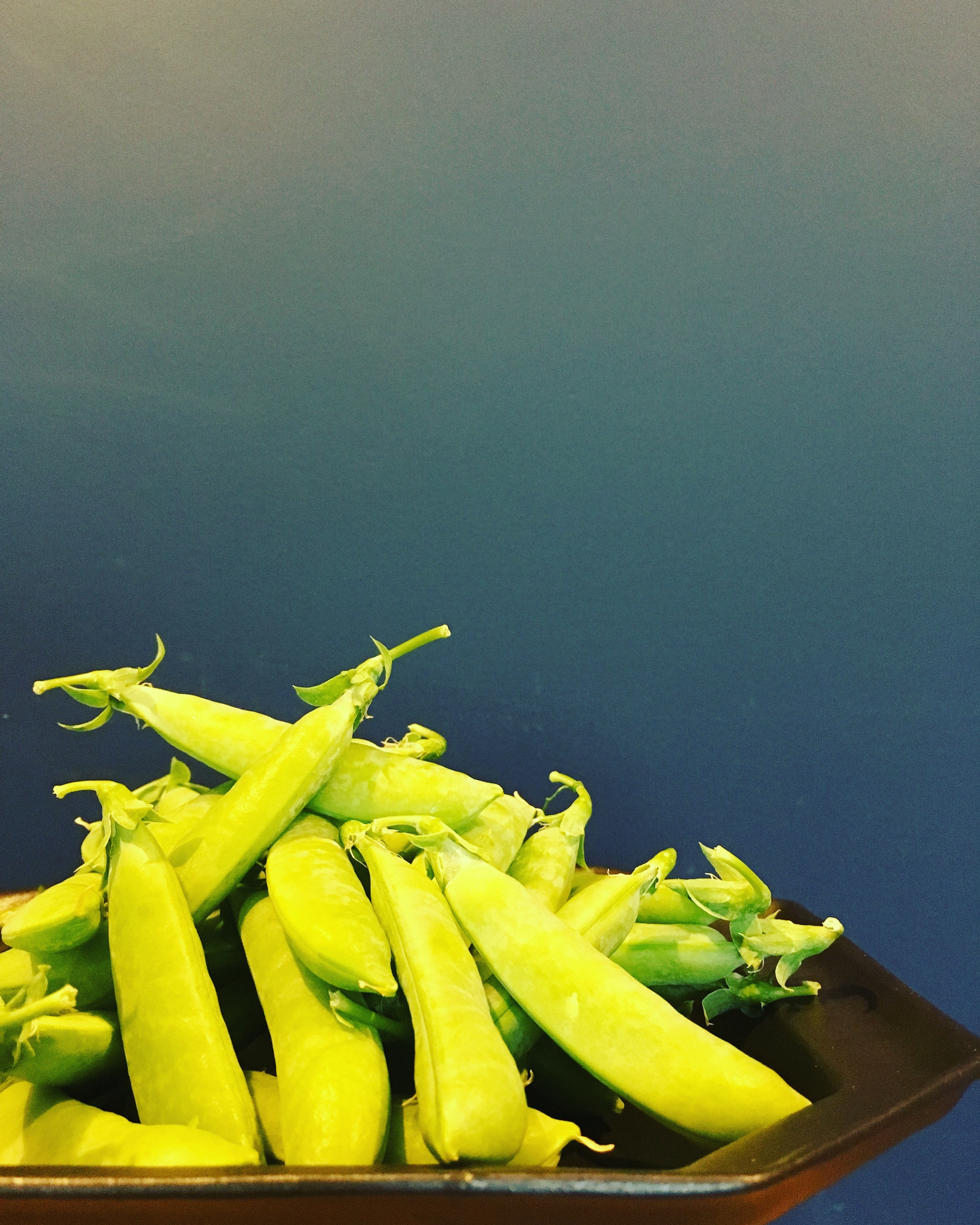 余市産スナップえんどうとゴルゴンゾーラを合わせて、トゥフォッリというイタリアの極太ショートパスタで。
